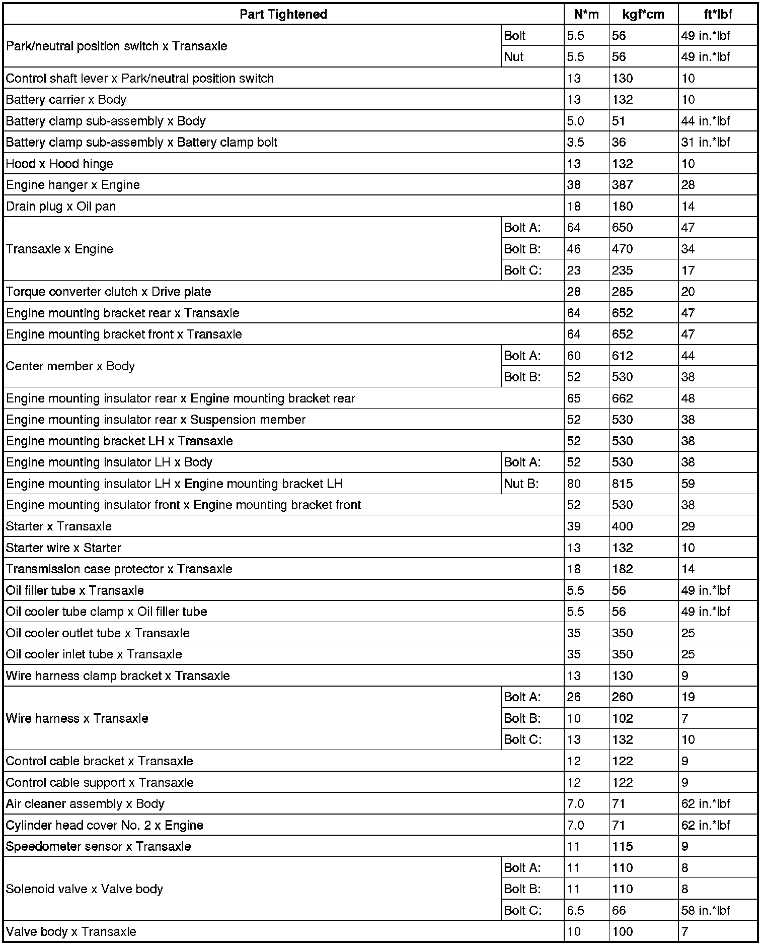 SERVICE SPECIFICATIONS: A246E AUTOMATIC TRANSAXLE:
