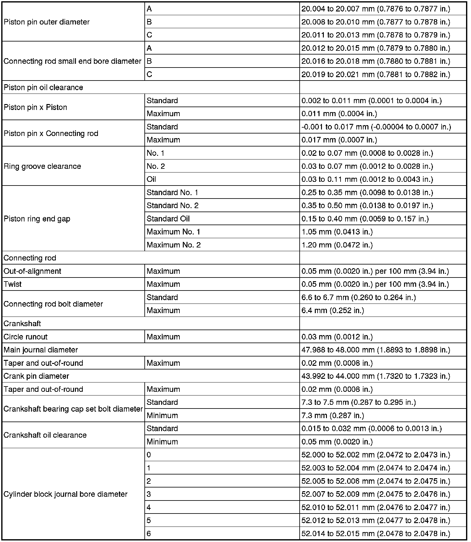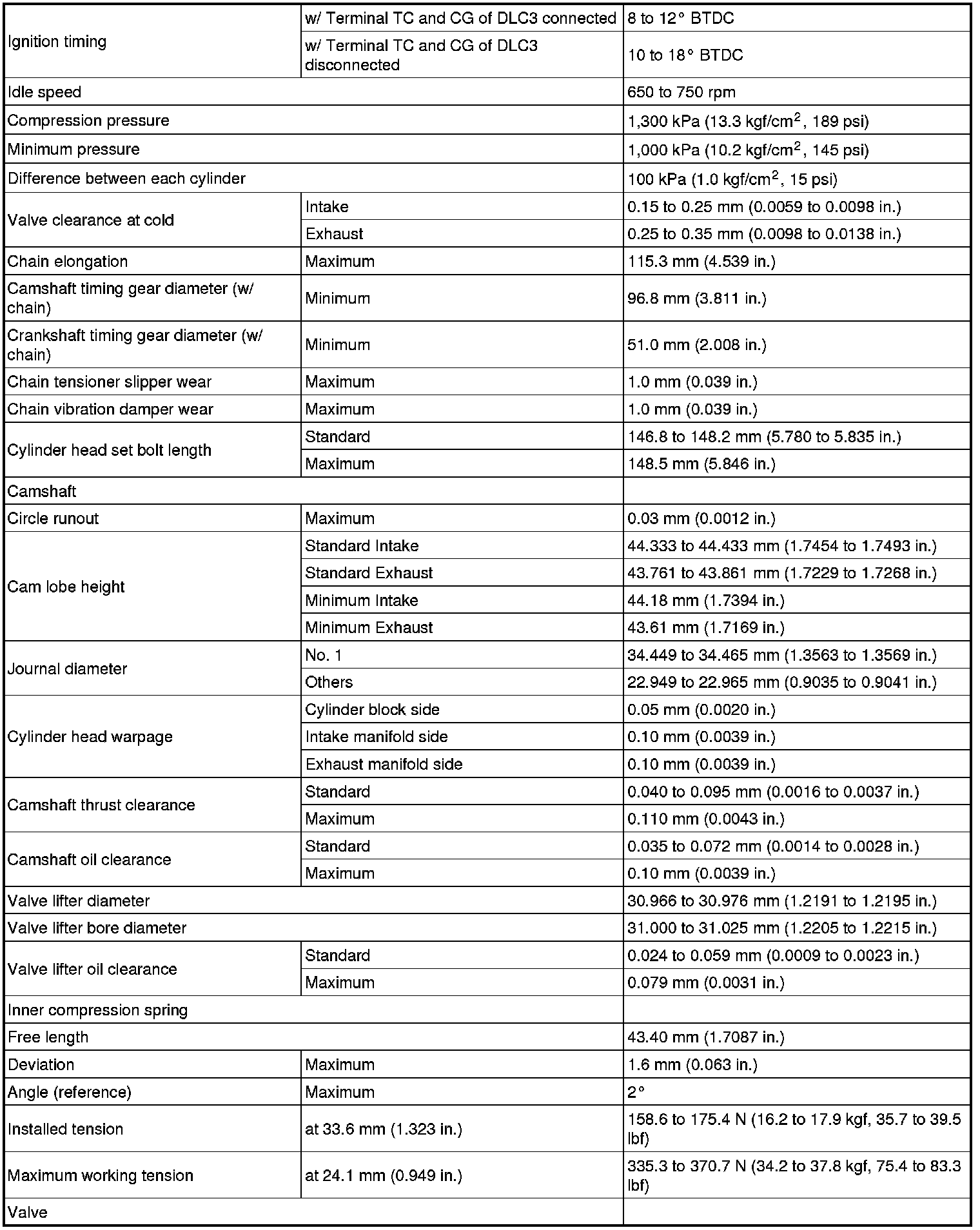 SERVICE SPECIFICATIONS: 1ZZ-FE ENGINE MECHANICAL: