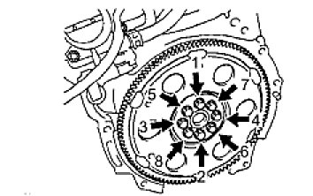 Using several steps, install and tighten the 8 bolts uniformly in the sequence shown in the illustration.
