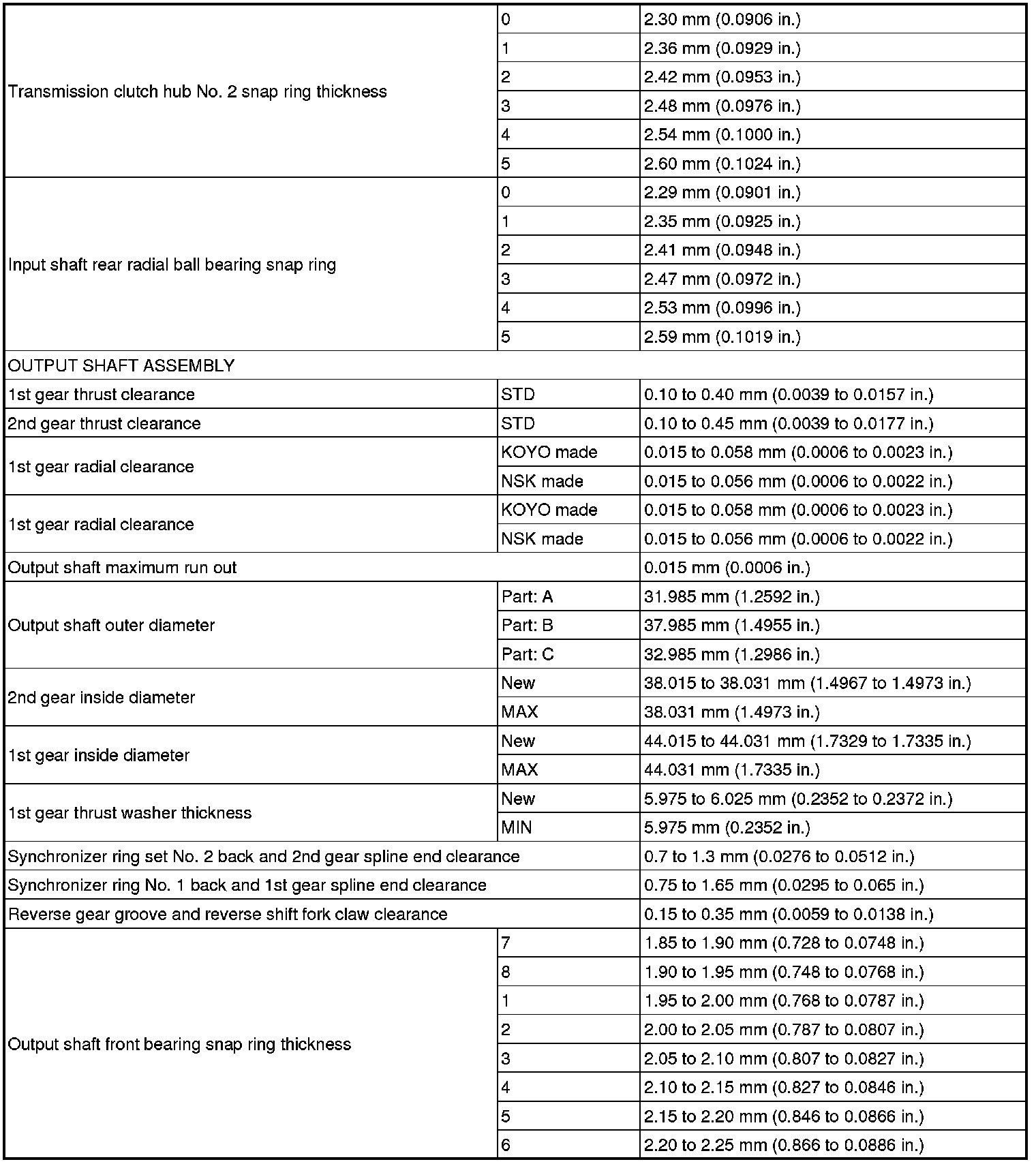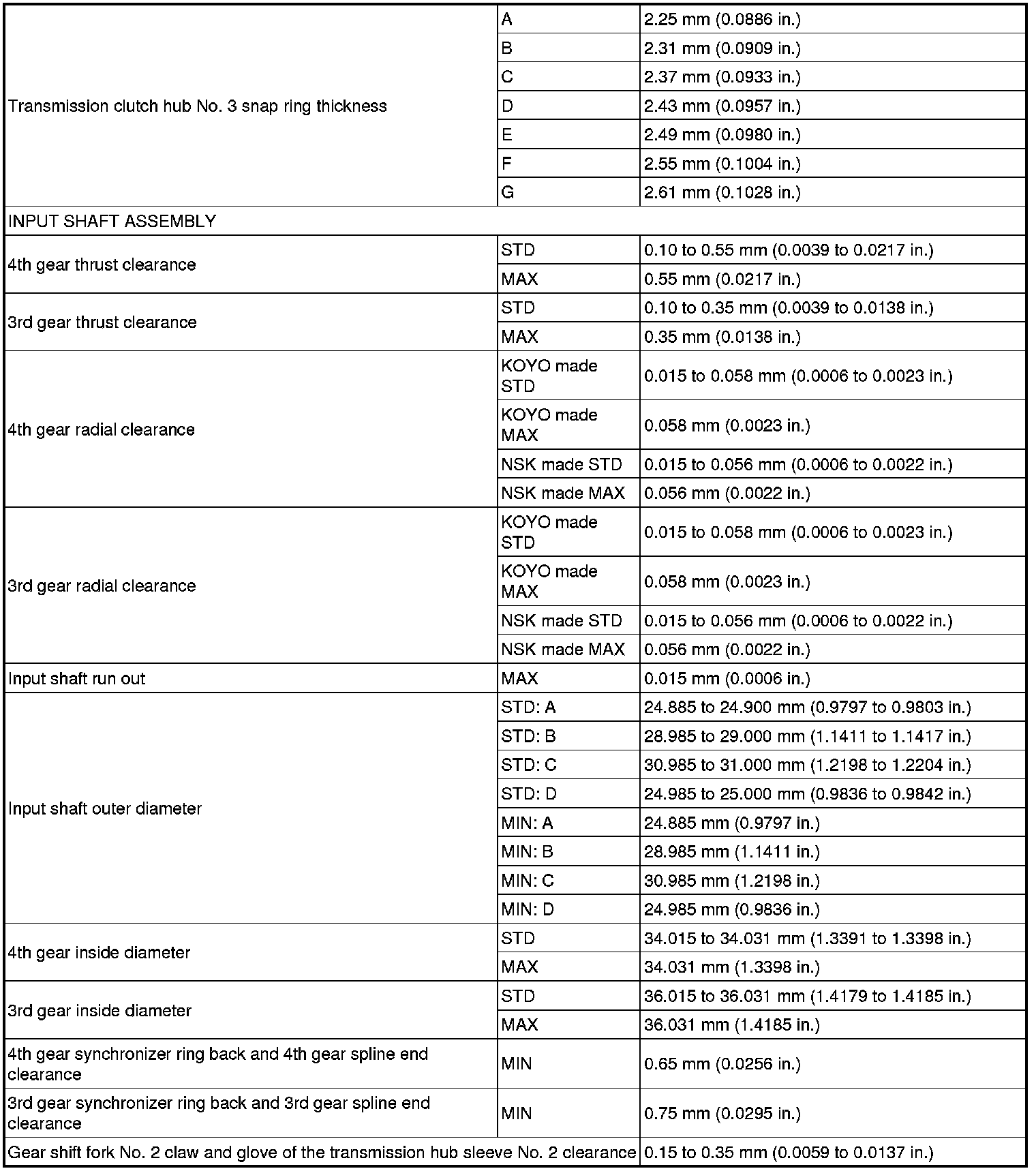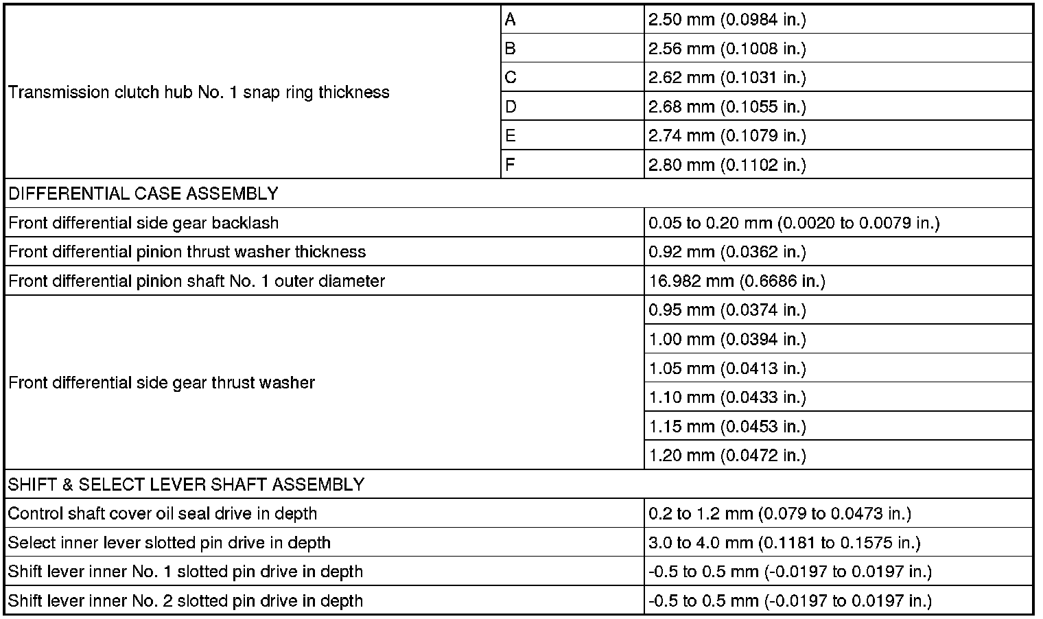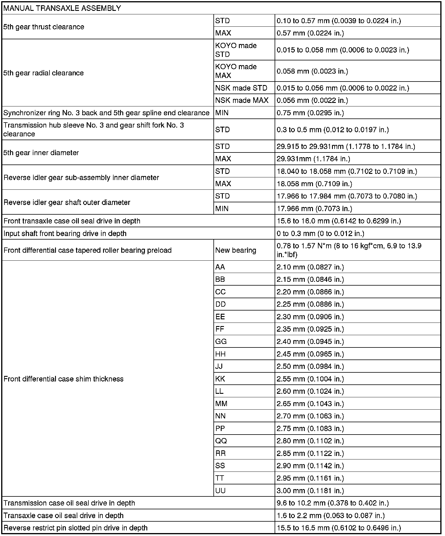 SERVICE SPECIFICATIONS: C59 MANUAL TRANSAXLE: