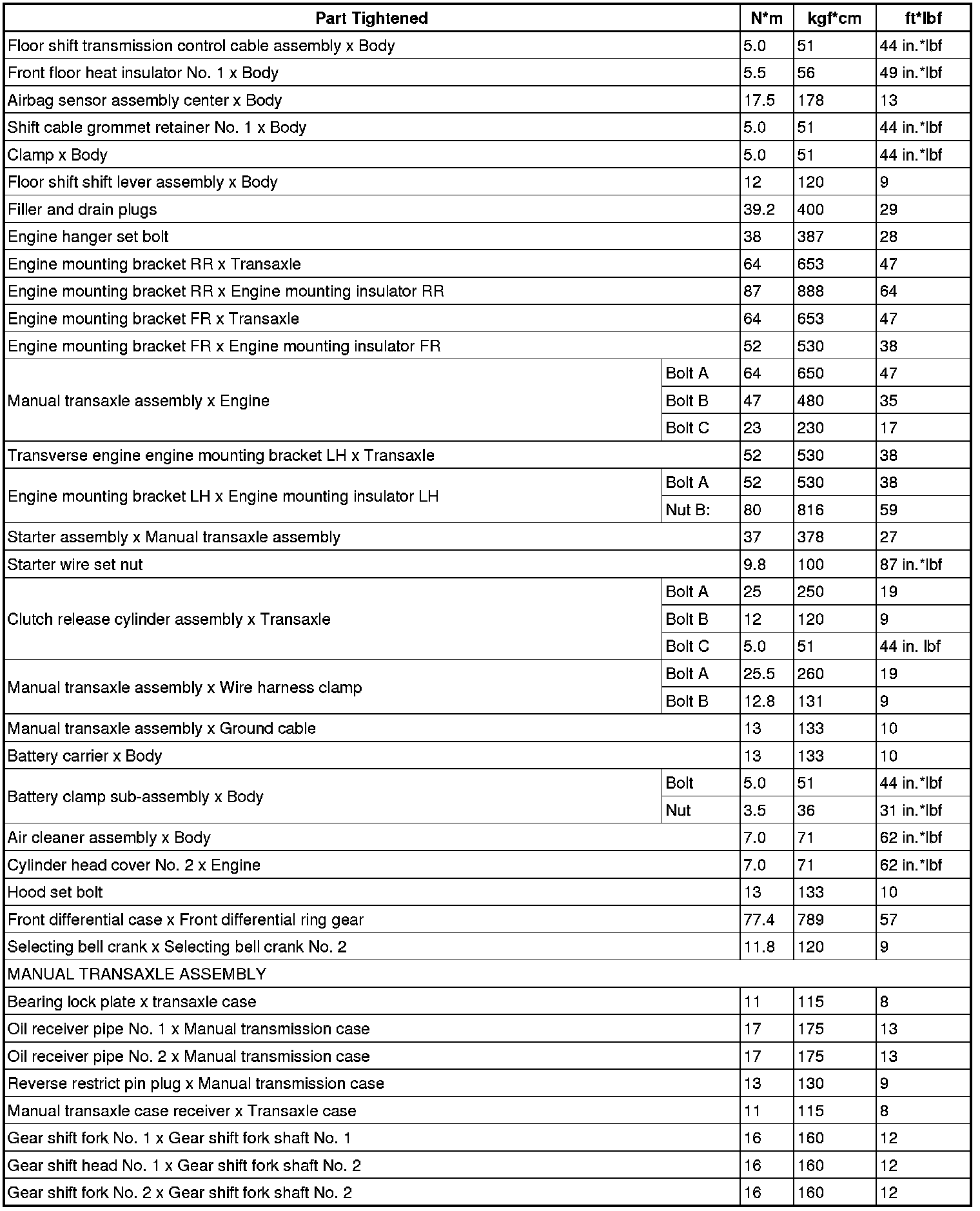 SERVICE SPECIFICATIONS: C59 MANUAL TRANSAXLE: