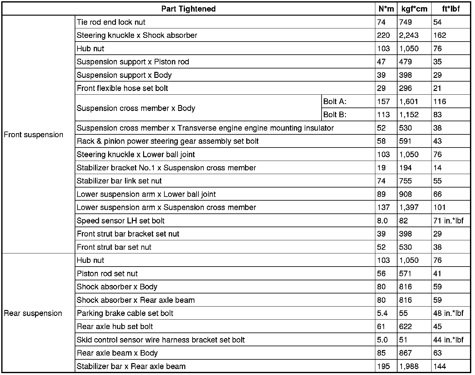 TORQUE SPECIFICATIONS