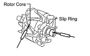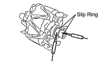 (2) Using an ohmmeter, measure the resistance between the slip ring and rotor.