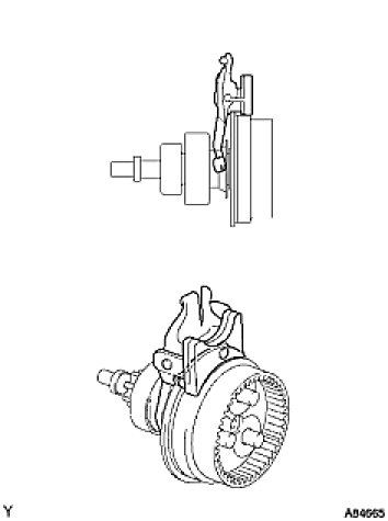 (a) Install the starter drive lever set pin to the starter center bearing clutch as shown in the illustration.