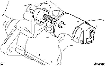 (a) Install the starter center bearing clutch together with the starter drive lever set pin to the starter drive housing.