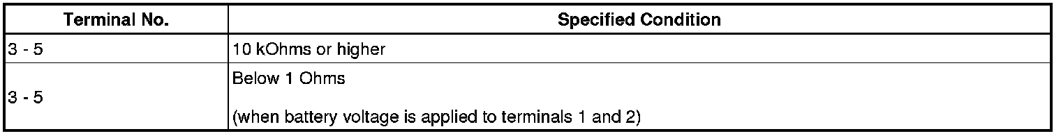 If the result is not as specified, replace the relay.