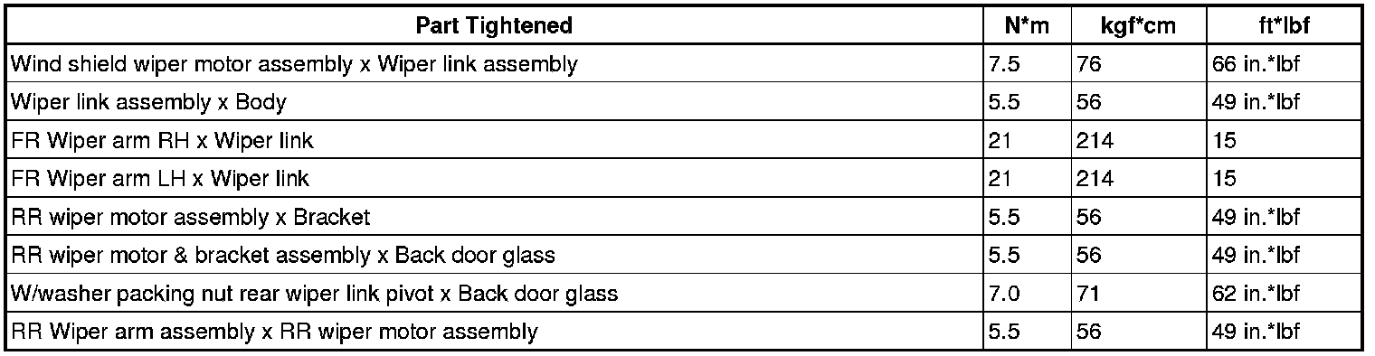 SERVICE SPECIFICATIONS: WIPER AND WASHER: