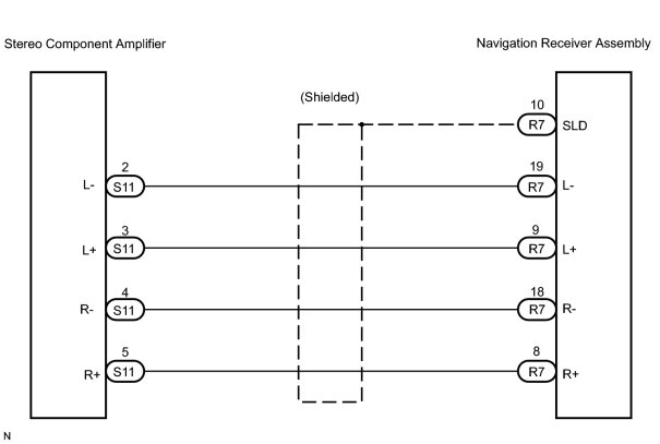NAVIGATION SYSTEM: Sound Signal Circuit between Navigation Receiver Assembly and Stereo Component Amplifier