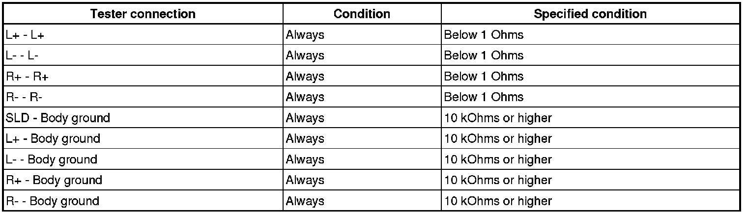 If there is an open or short in the circuit, sound cannot be heard from the speakers even if there is no malfunction in the stereo component amplifier or speakers.