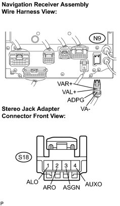 (a) Disconnect the connectors from the stereo jack adapter and navigation receiver assembly.