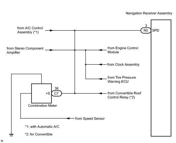 Vehicle Speed Signal Circuit between Navigation Receiver Assembly and Combination Meter