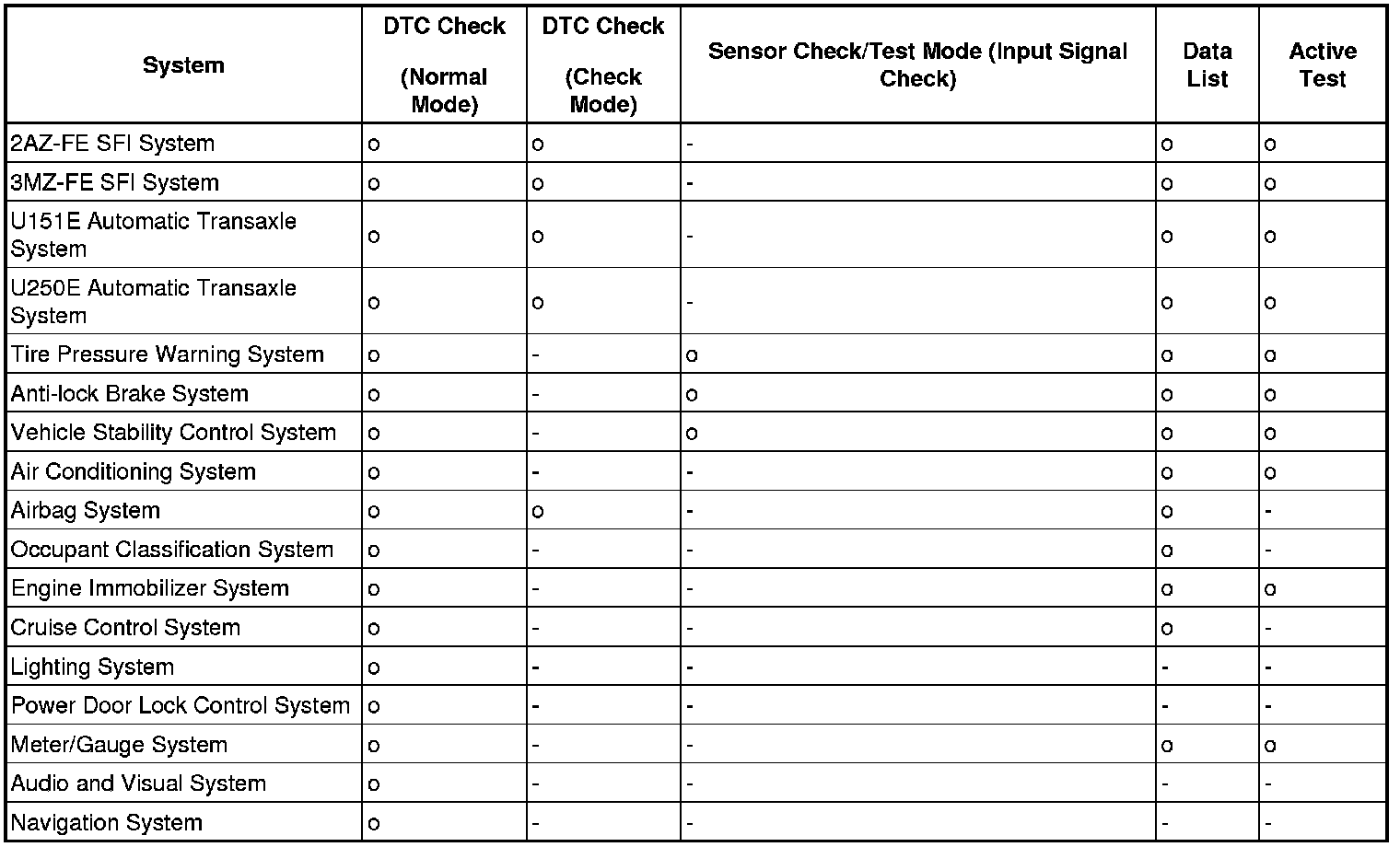 By using these functions, the problem areas can be narrowed down and troubleshooting is more effective. Diagnostic functions are incorporated in the following system in the CAMRY SOLARA.