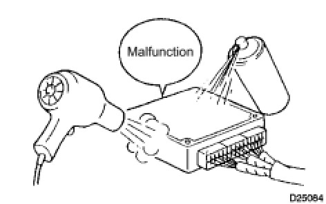 (1) Heat the component that is the possible cause of the malfunction with a hair dryer or similar device. Check if the malfunction occurs.