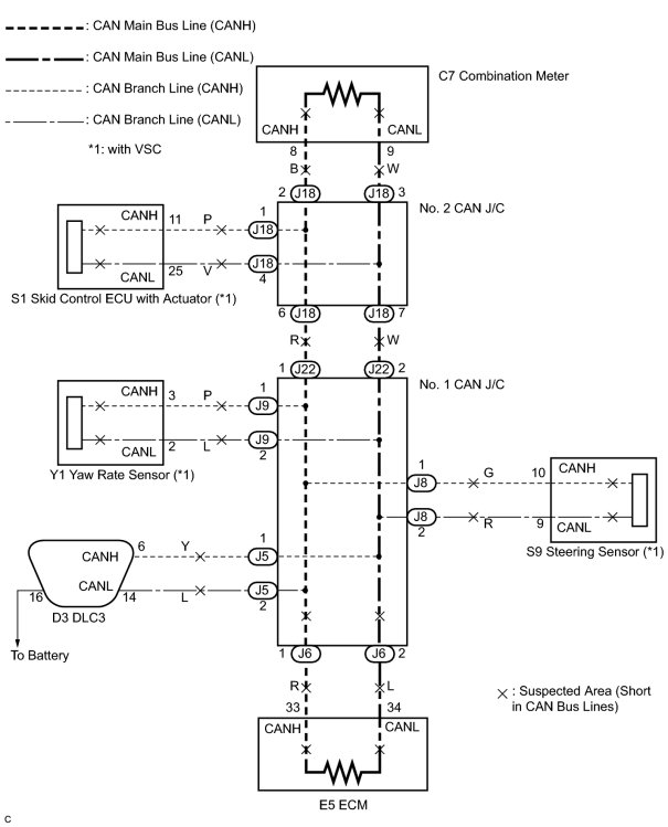 2. CHECK FOR SHORT TO B+ IN CAN BUS WIRE (NO. 1 CAN J/C SIDE)