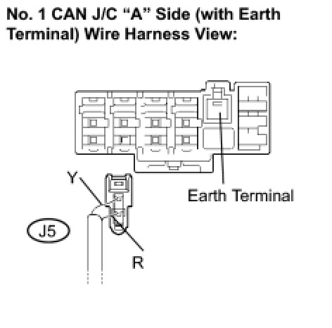 (d) Reconnect the DLC3 branch wire connector (J5) to the No. 1 CAN J/C "A" side (with earth terminal).