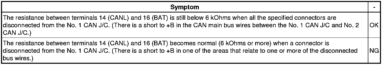 OK -- CHECK FOR SHORT TO B+ IN CAN BUS WIRE (COMBINATION METER MAIN BUS WIRE, CANL)