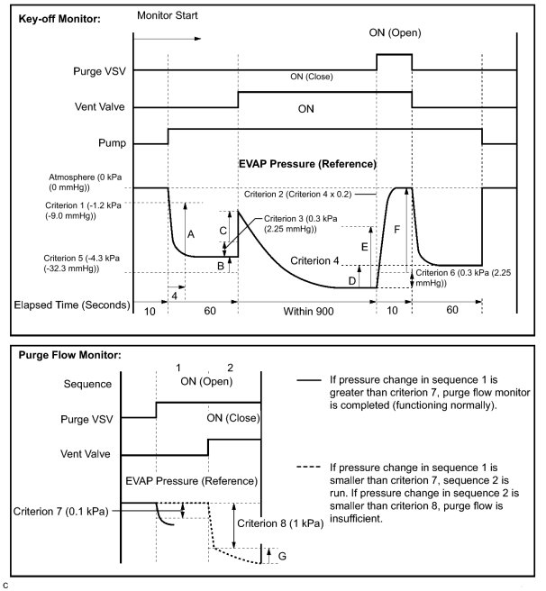 The purge flow monitor consists of the two monitors. The 1st monitor is always conducted every time and the 2nd monitor is activated if necessary.