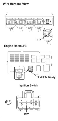 (b) Check the wire harness between the C/OPN relay and ignition switch.