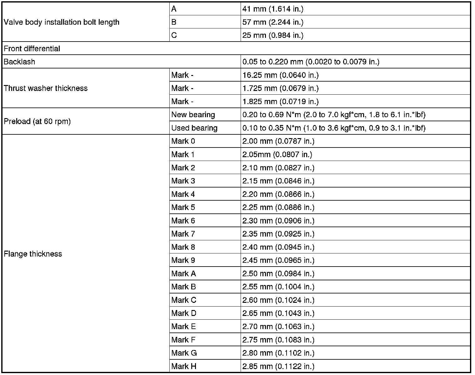 SERVICE SPECIFICATIONS: U151E AUTOMATIC TRANSAXLE: