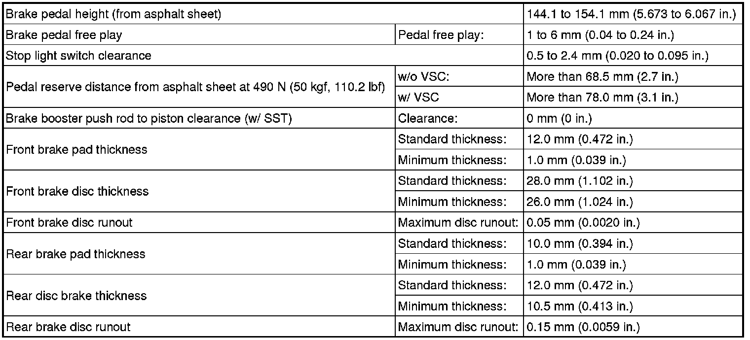 SERVICE SPECIFICATIONS: BRAKE: