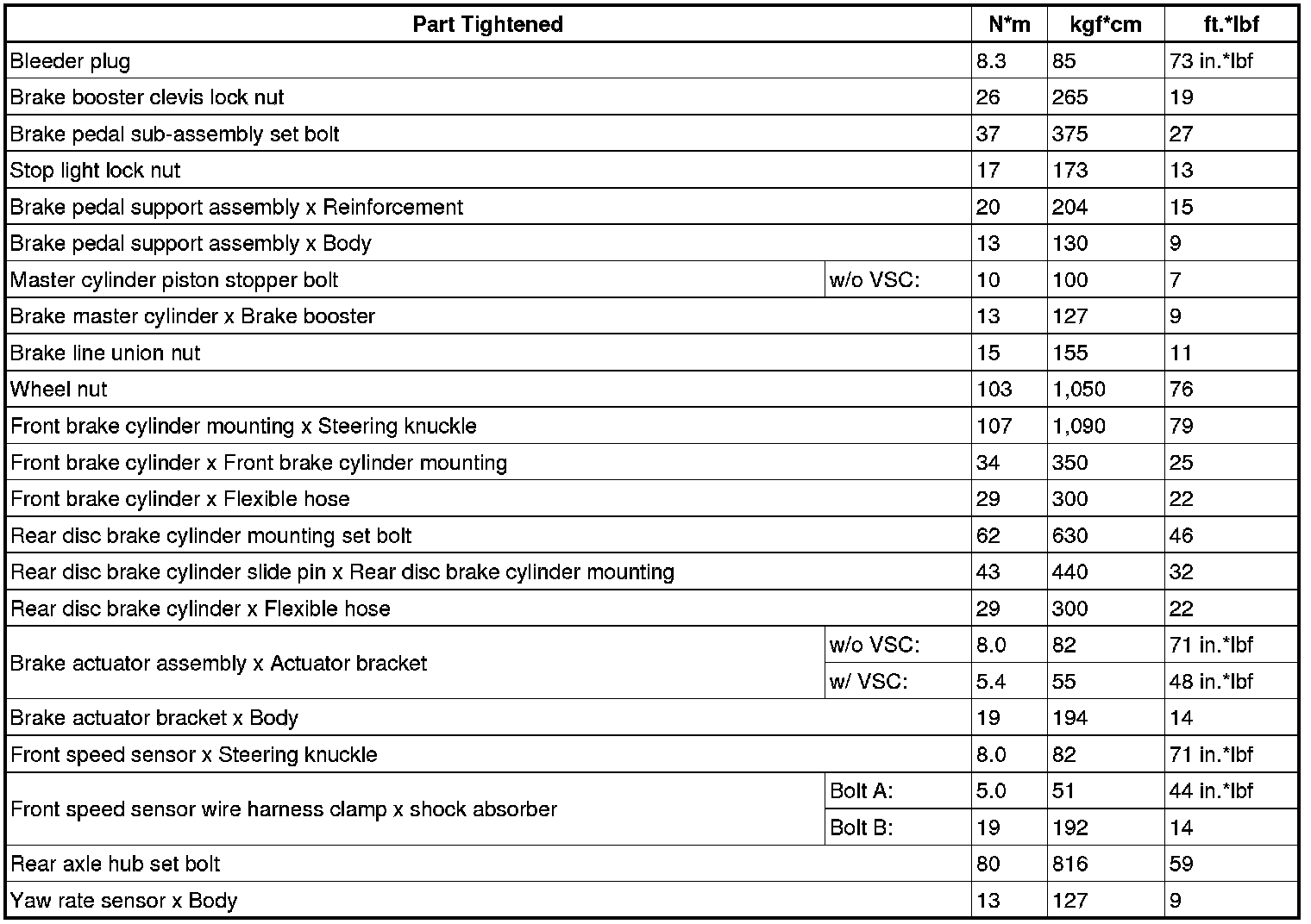Torque Specifications