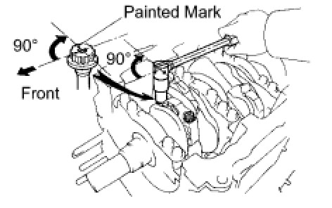 - Retighten the cap bolts by 90°as shown in the illustration.