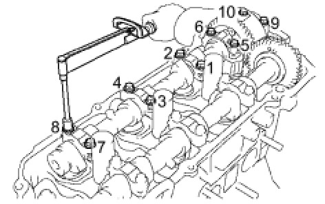 Uniformly tighten the 10 bearing cap bolts in the sequence shown in the illustration.