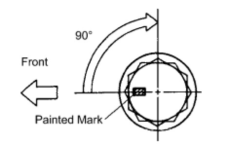 Mark the front side of each cylinder head bolt head with paint as shown in the illustration.