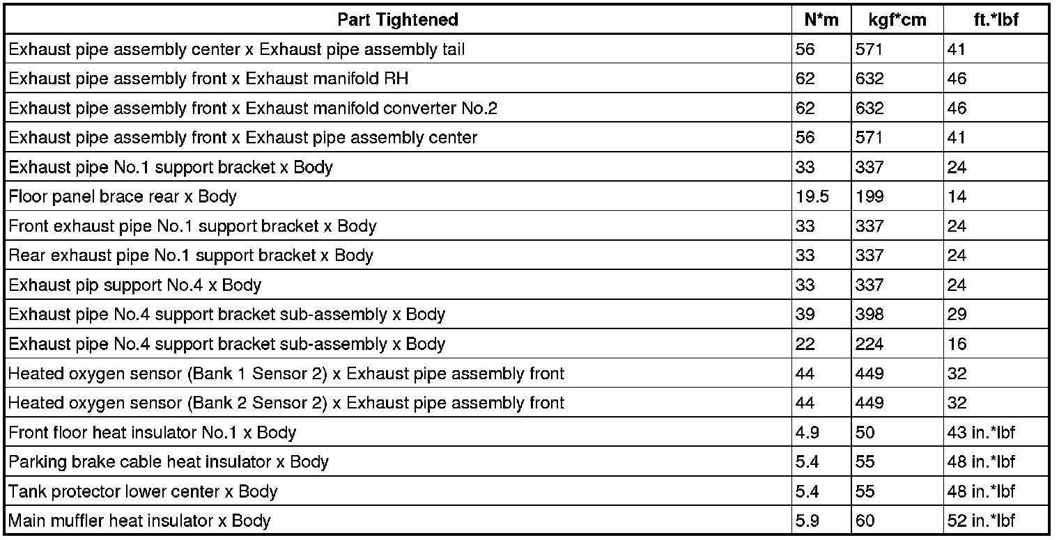 SERVICE SPECIFICATIONS: 3MZ-FE EXHAUST: