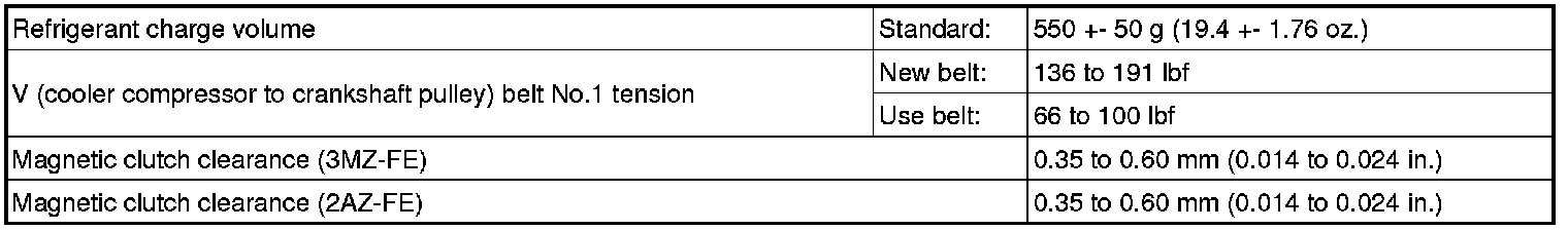 SERVICE SPECIFICATIONS: AIR CONDITIONING: