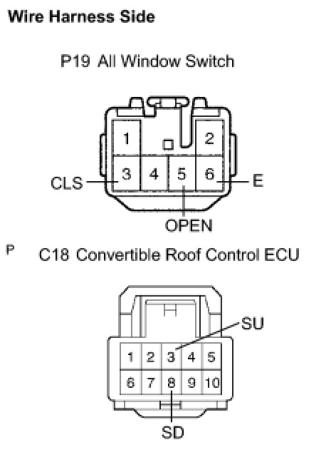 (a) Check the wire harness between the quarter window motor LH and convertible roof control ECU.
