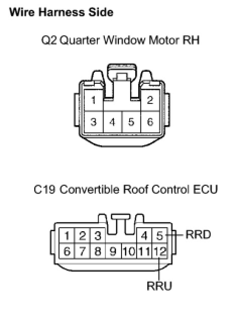 (b) Check the wire harness between the quarter window motor RH and convertible roof control ECU.