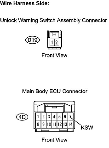 (a) Disconnect the D19 unlock warning switch connector.