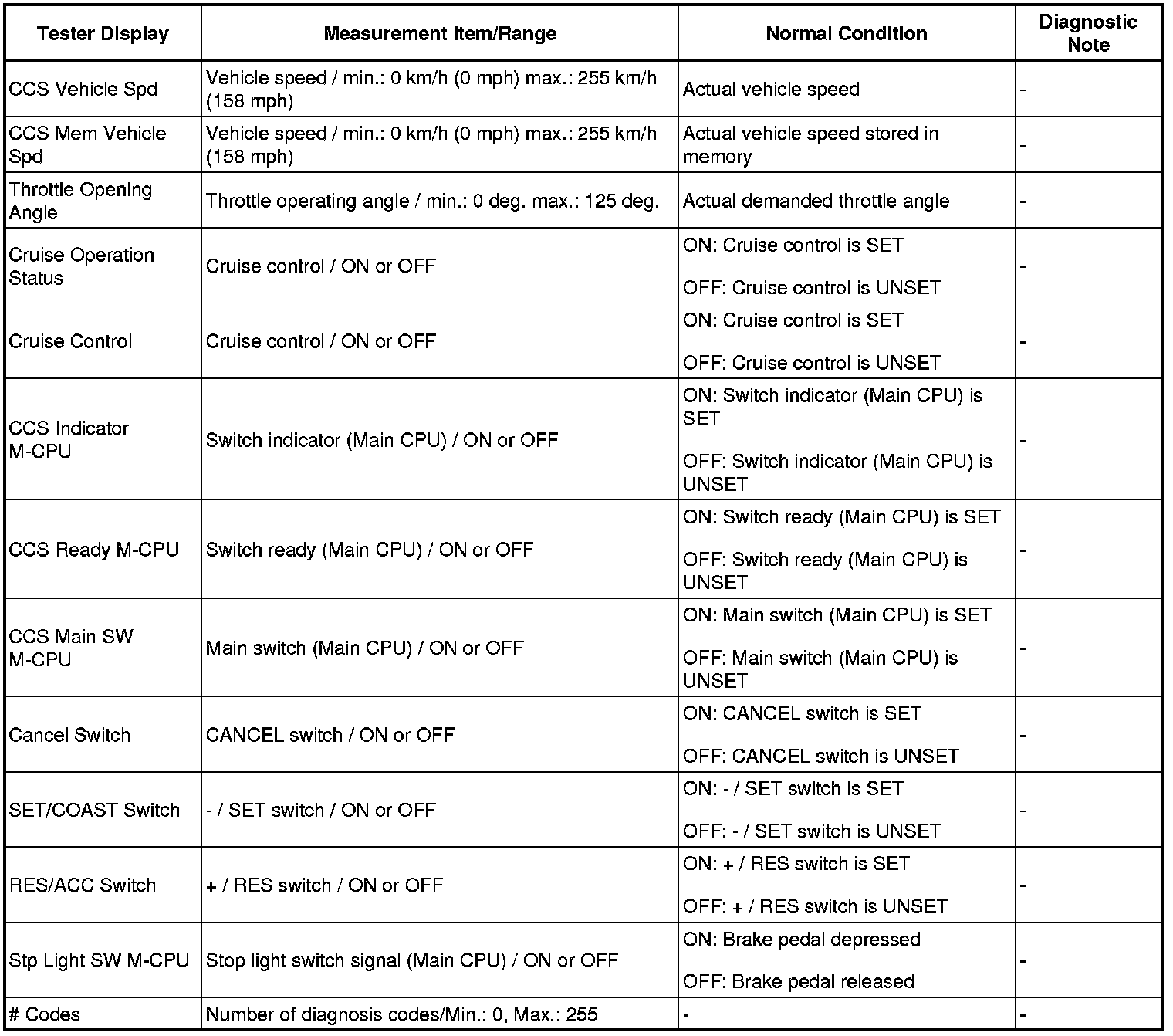 (d) Enter the following menus: Powertrain / Cruise Control / Data List.