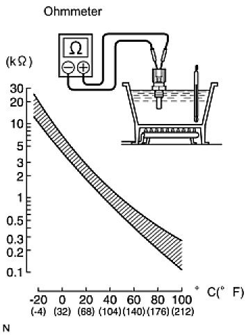 NOTICE: When checking the engine coolant temperature sensor in water, keep the terminals dry. After the check, wipe the sensor dry.