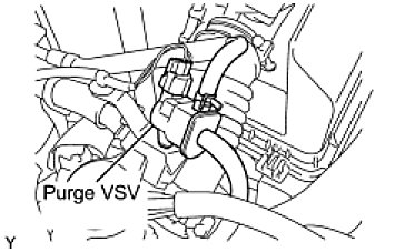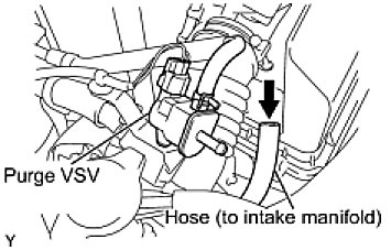 (a) Disconnect the hose (connected to the intake manifold) from the purge VSV.