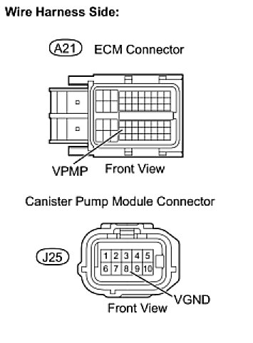 (c) Check the resistance between VPMP terminal of the ECM connector and VGND terminal of the canister pump module connector.