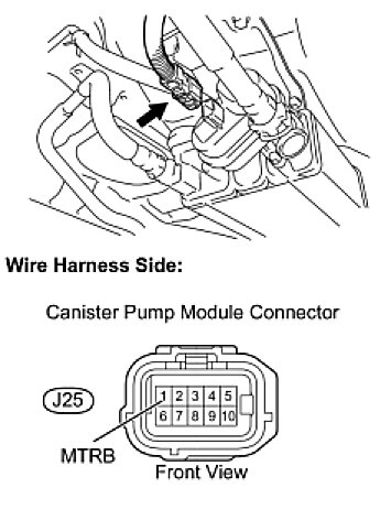 NOTE: When replacing the canister, check the canister pump module interior and related pipes for water, fuel and other liquids. If liquids are present, check for disconnections and/or cracks in the following: 1) the pipe from the air inlet port to the canister pump module; 2) the canister filter; and 3) the fuel tank vent hose.