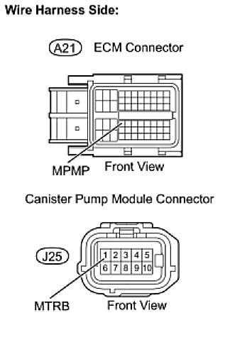 (d) Check the resistance between MPMP terminal of the ECM connector and MTRB terminal of the canister pump module connector.