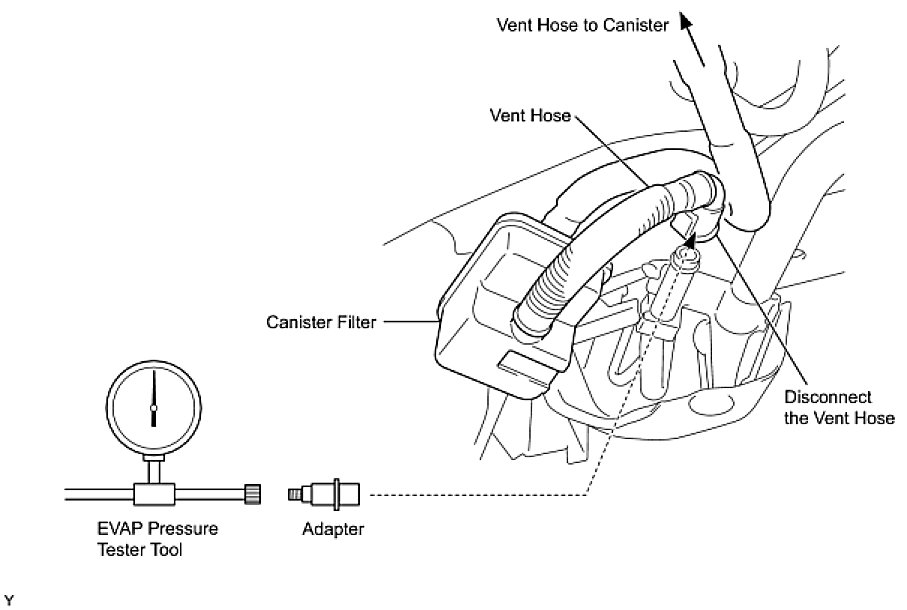 (b) Connect the EVAP pressure tester tool to the vent hose with the adapter.