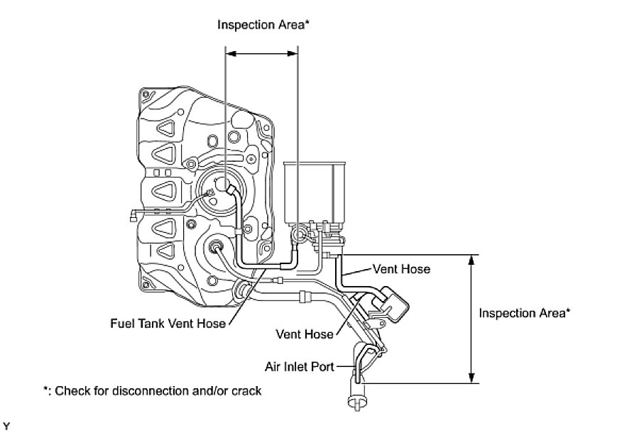 HINT: Disconnect the hose between the canister and the fuel tank from the canister. Block the canister side and conduct an inspection. In this way, the fuel tank can be excluded as an area suspected of causing fuel leaks.