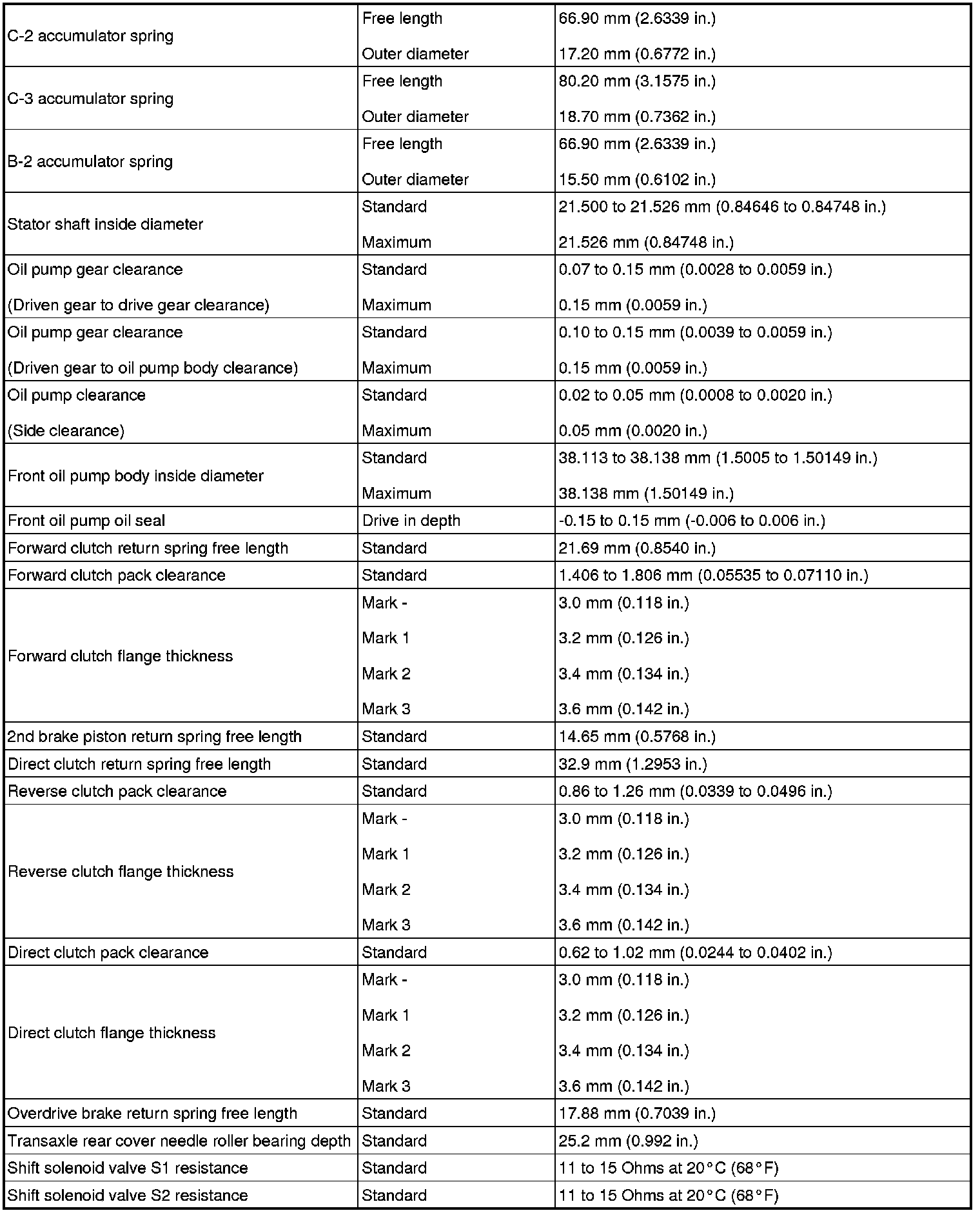 SERVICE SPECIFICATIONS: U340E AUTOMATIC TRANSAXLE: