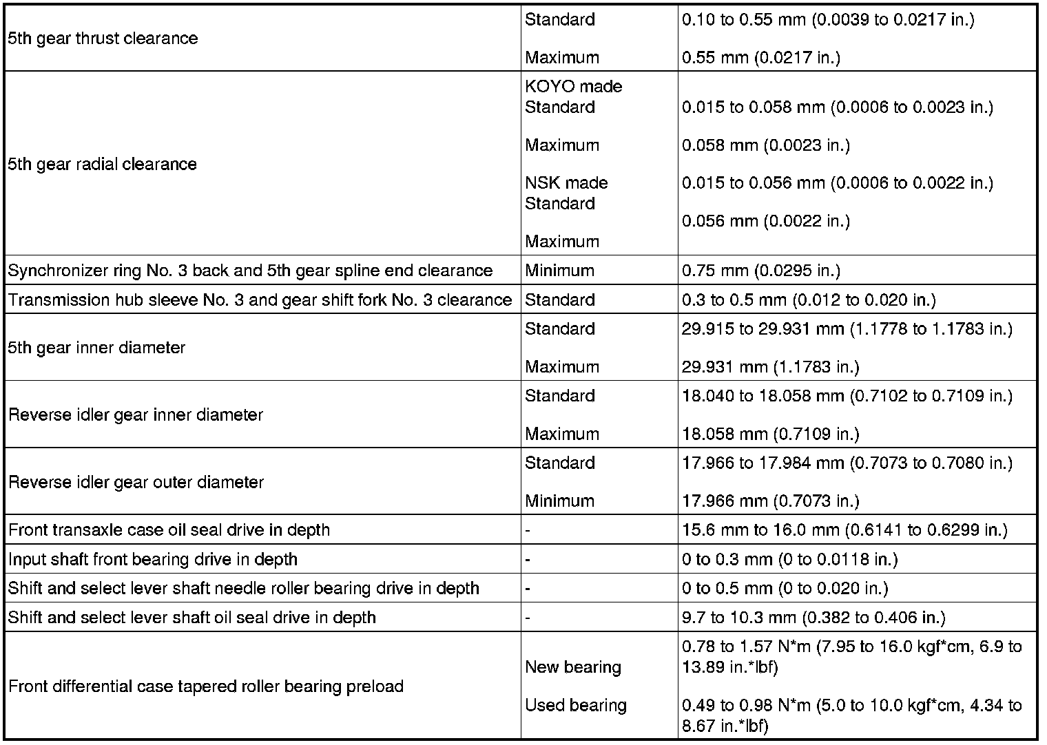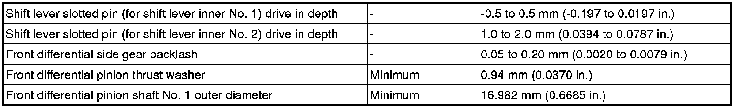 SERVICE SPECIFICATIONS: C50 MANUAL TRANSAXLE: