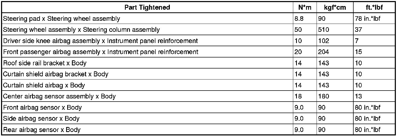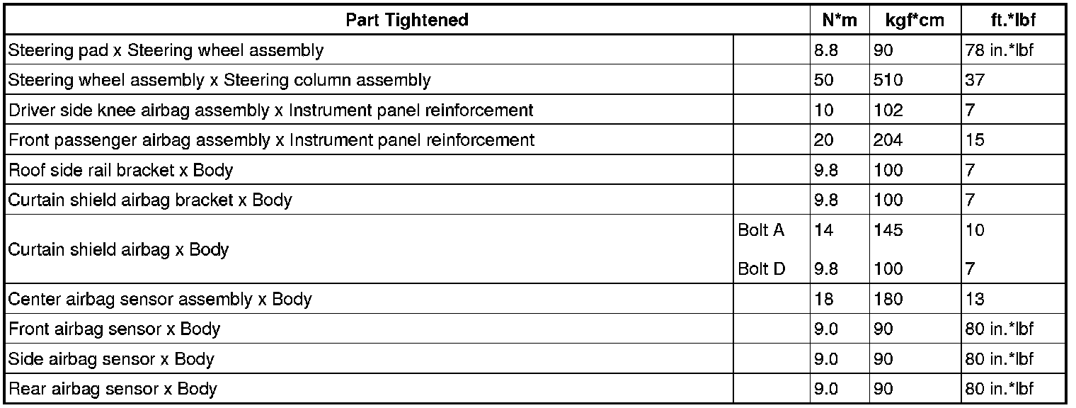 SERVICE SPECIFICATIONS: SUPPLEMENTAL RESTRAINT SYSTEM: