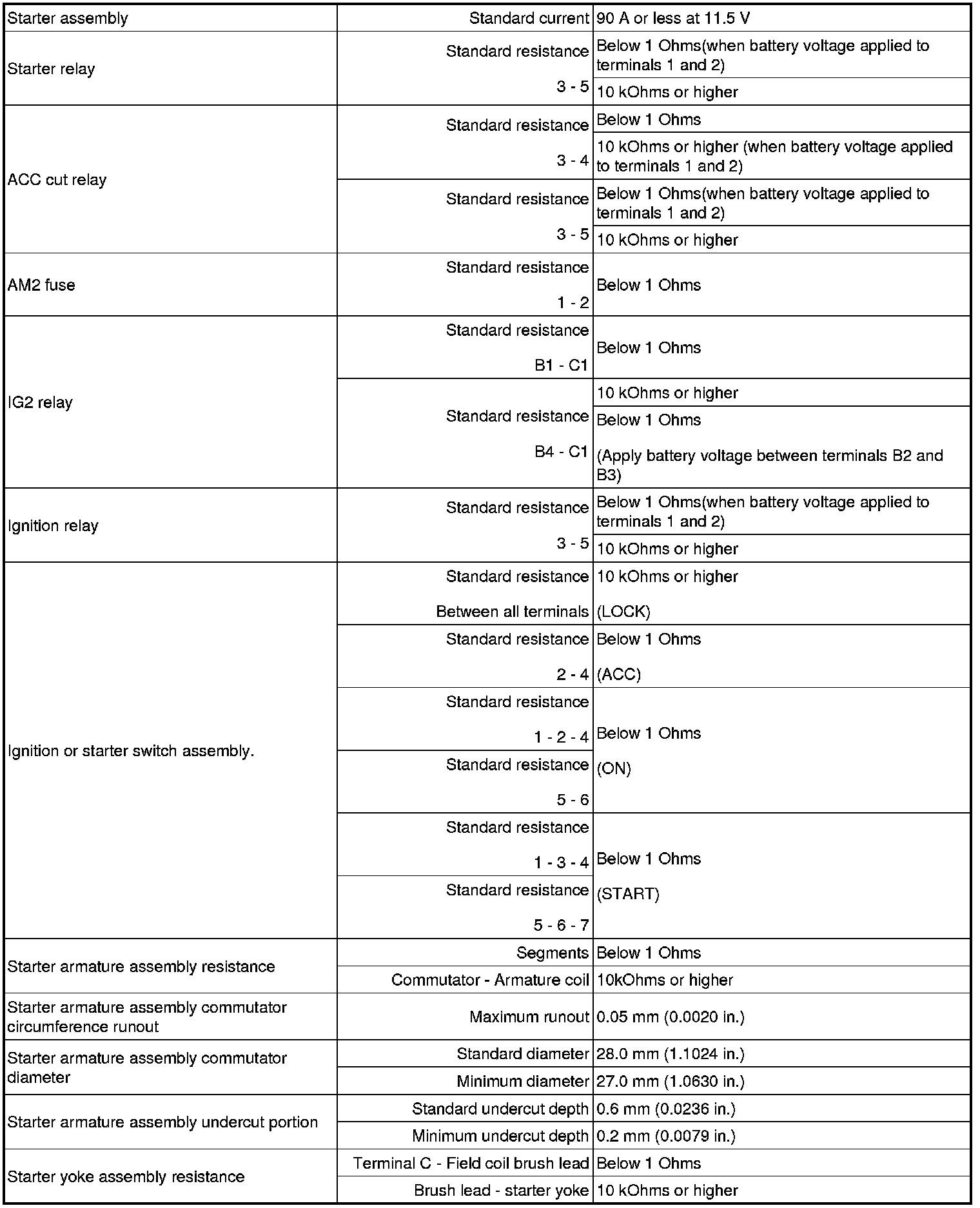 SERVICE SPECIFICATIONS: 1NZ-FE STARTING: