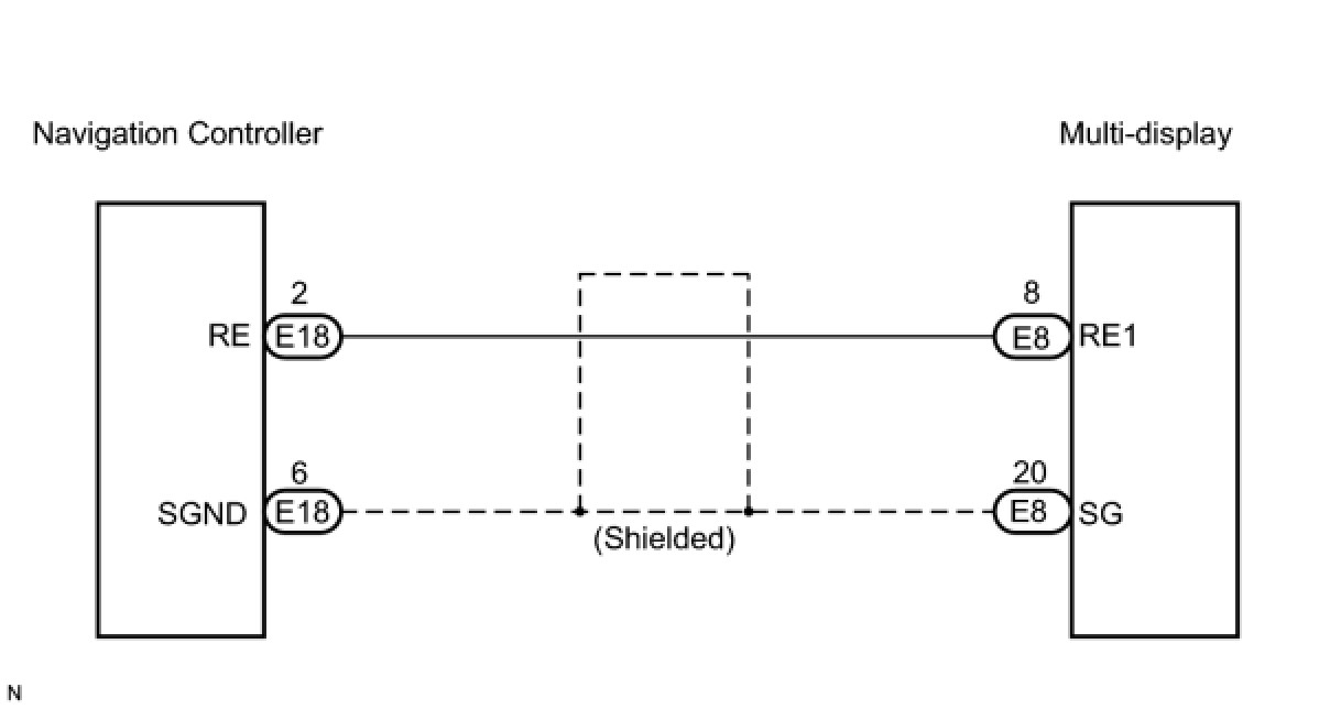 (a) Disconnect the multi-display connector E8 and navigation controller connector E18.