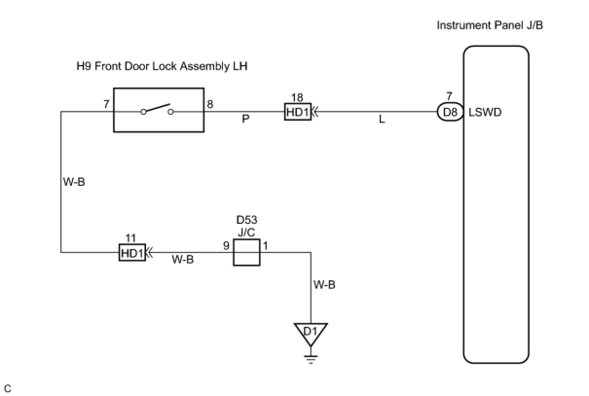 DOOR LOCK: POWER DOOR LOCK CONTROL SYSTEM: Driver Side Door UNLOCK Detection Switch Circuit