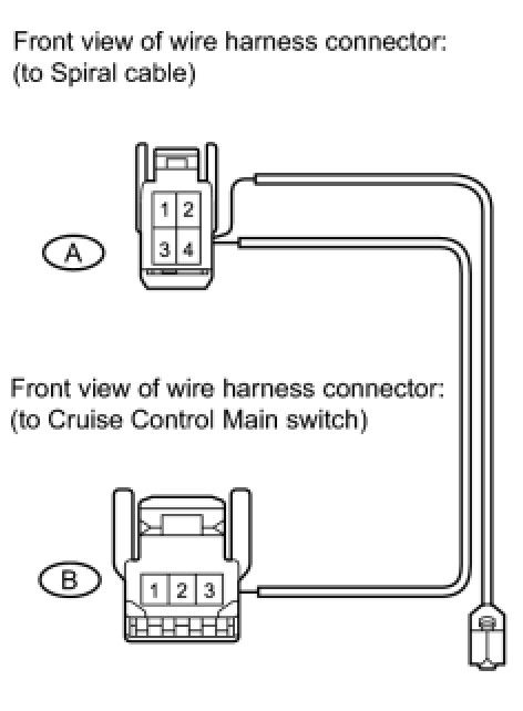 3. CHECK HARNESS AND CONNECTOR (CRUISE CONTROL MAIN SWITCH - SPIRAL CABLE)