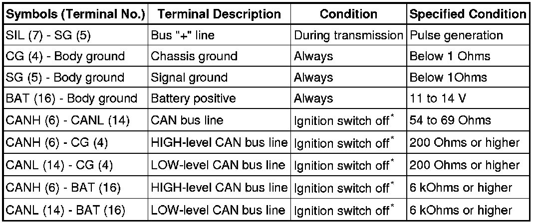 NOTE: *Before measuring the resistance, leave the vehicle as it is for at least 1 minute and do not operate the ignition switch, or any other switches or the doors.
