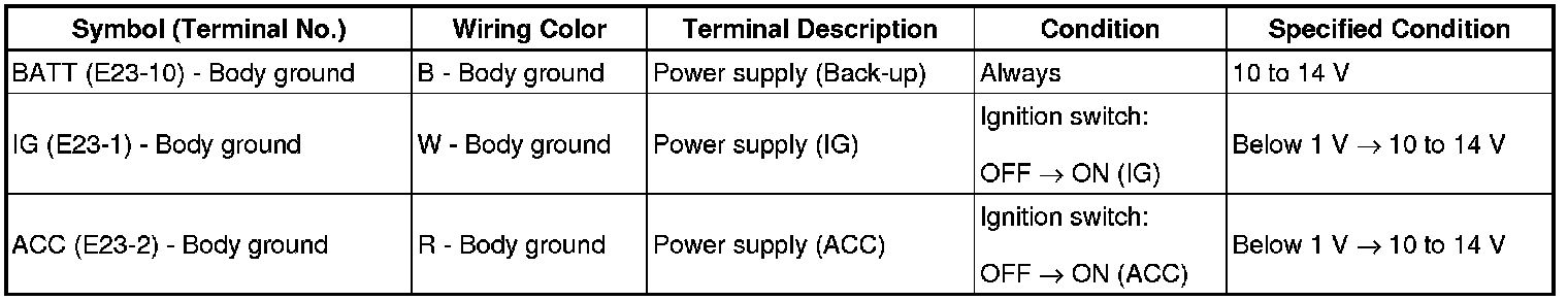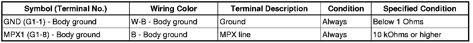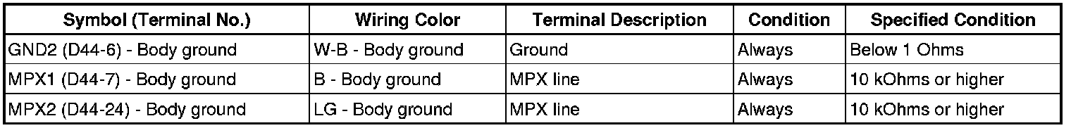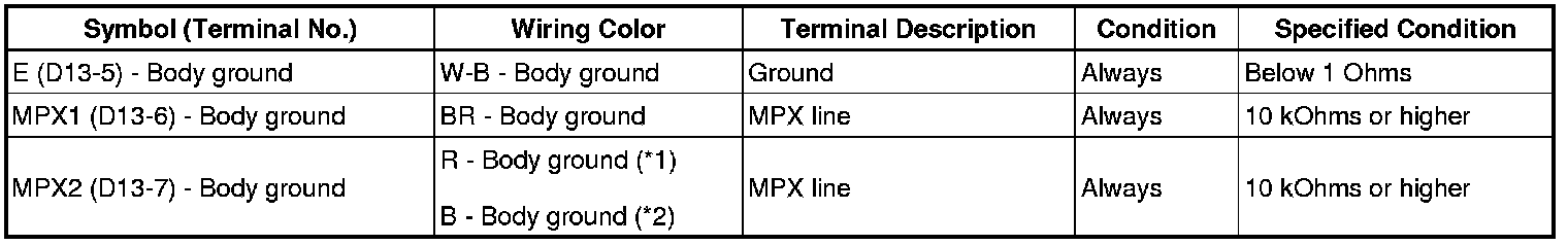 If the values do not conform to the conditions specified, there may be a malfunction on the wire harness side.
